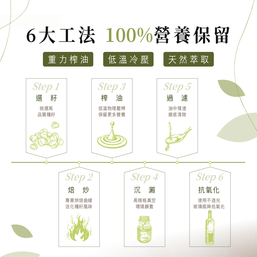 *未經脫膠脫酸脫色脫臘脫臭精煉過程,保留天然植化素等多種營養