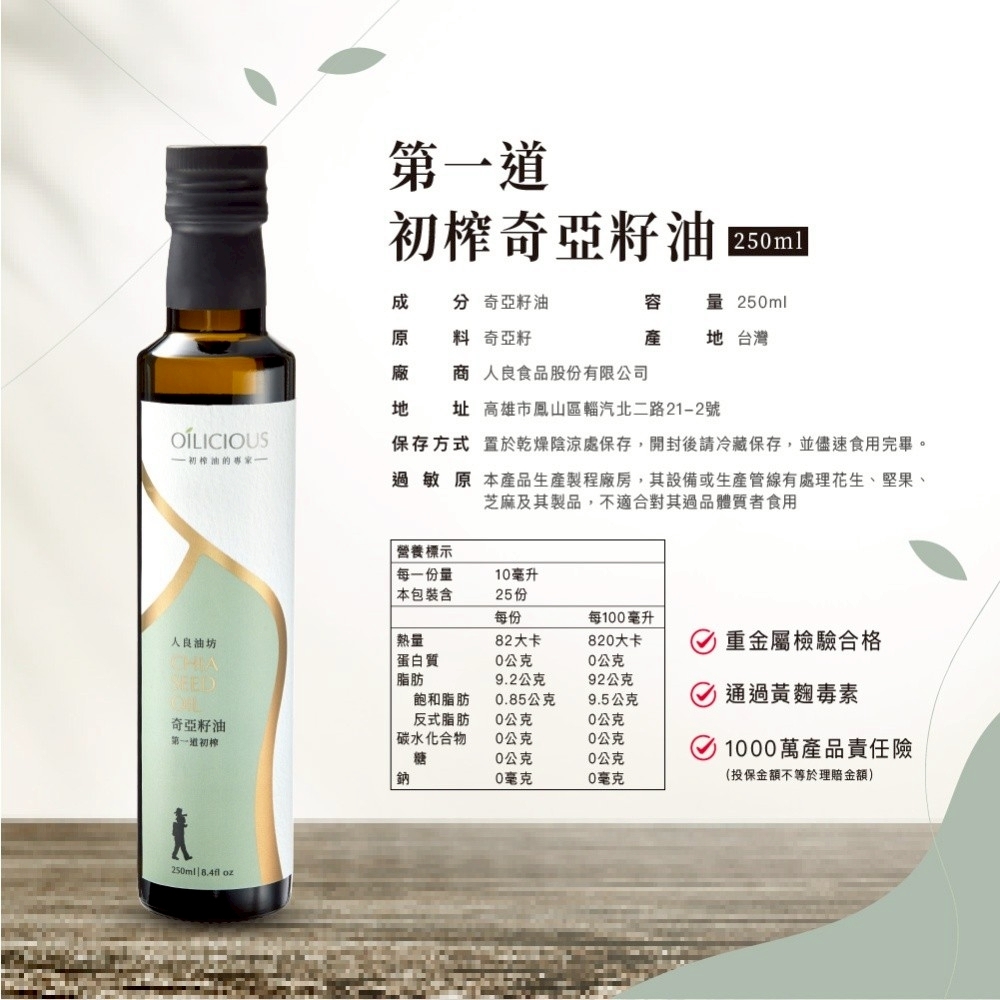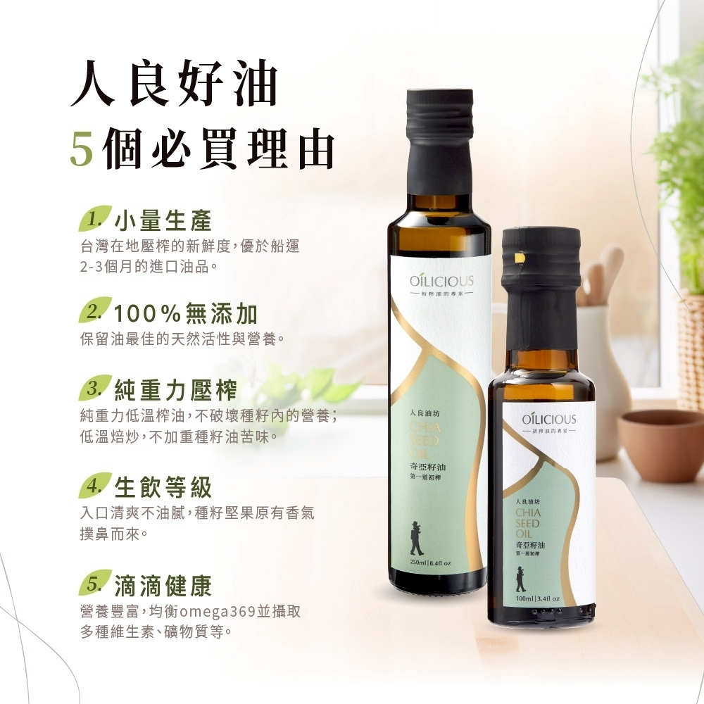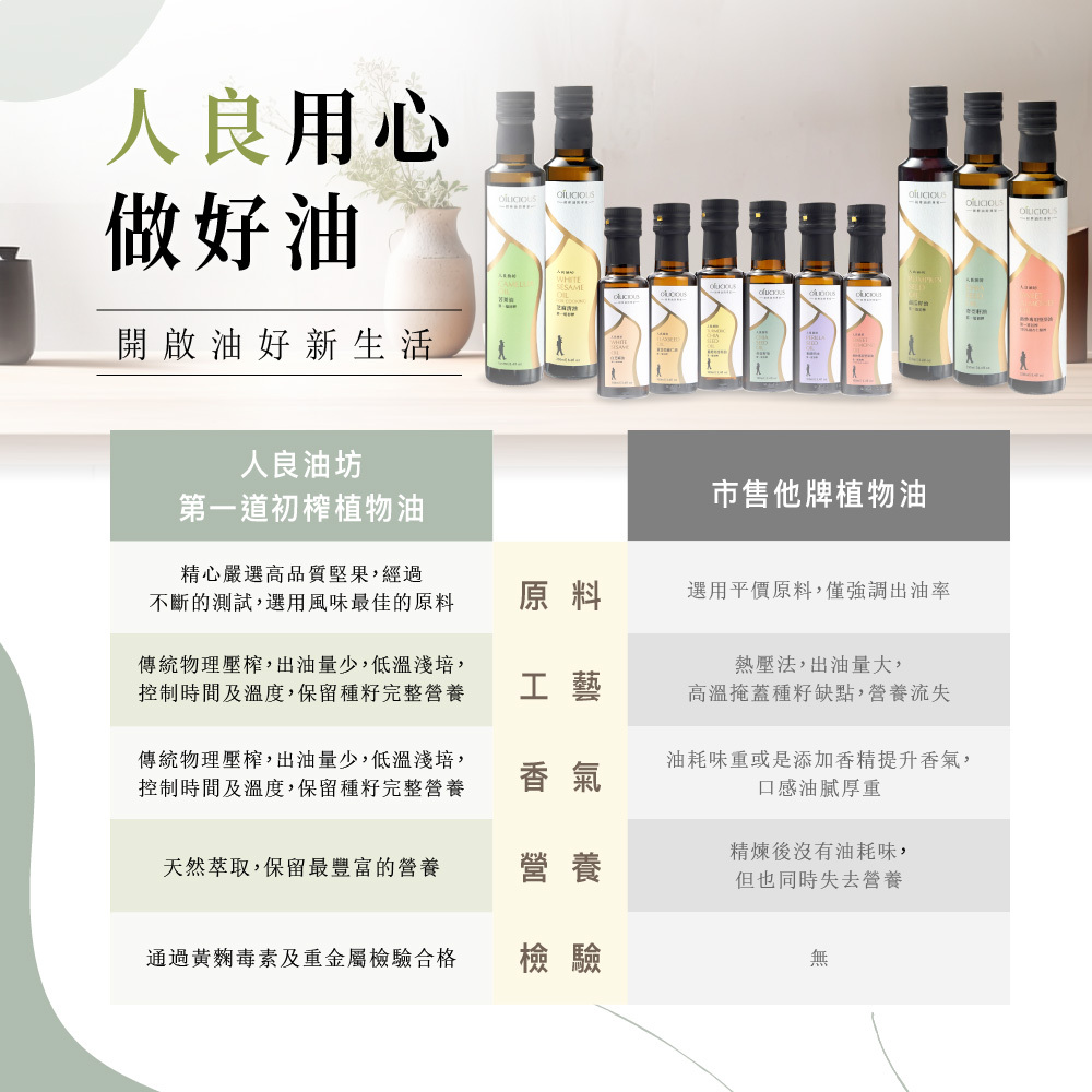 ‧台灣在地生產,純物理重力壓榨,萃取第一道冷壓初榨油