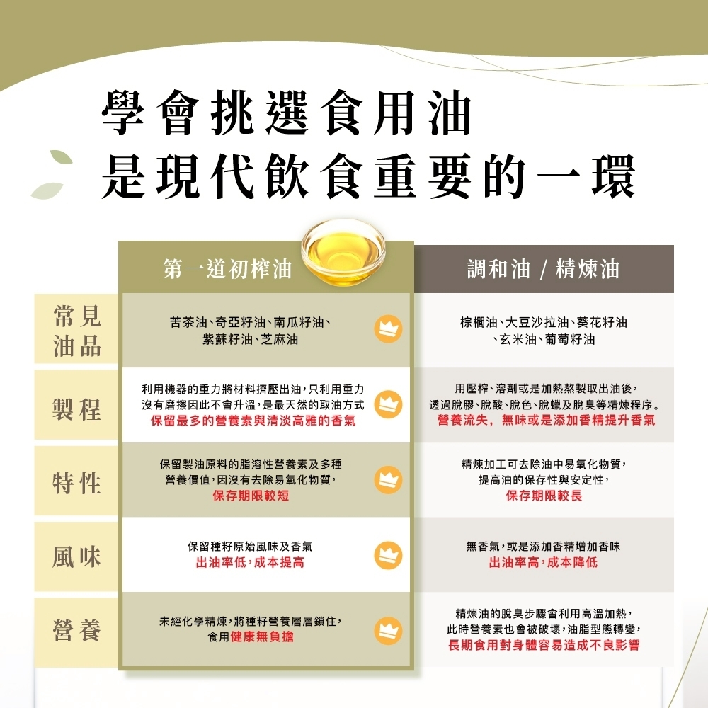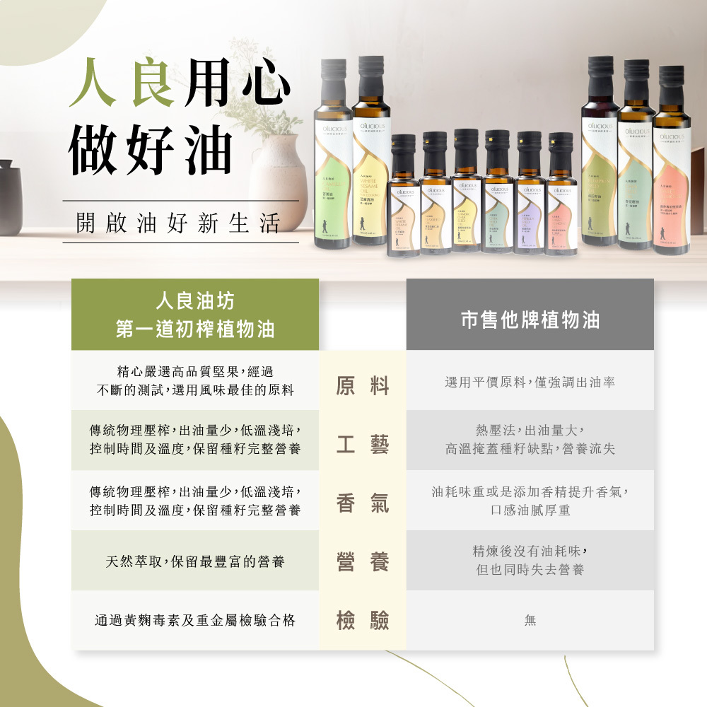 💯台灣在地生產,純物理重力壓榨,萃取第一道冷壓初榨油