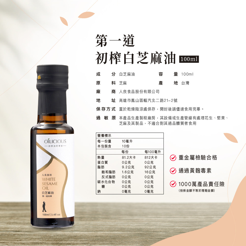 成分:100%第一道冷壓初榨白芝麻油 香油