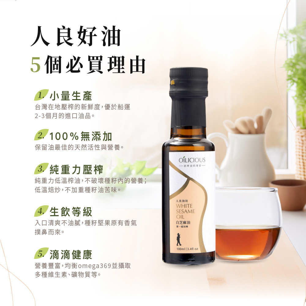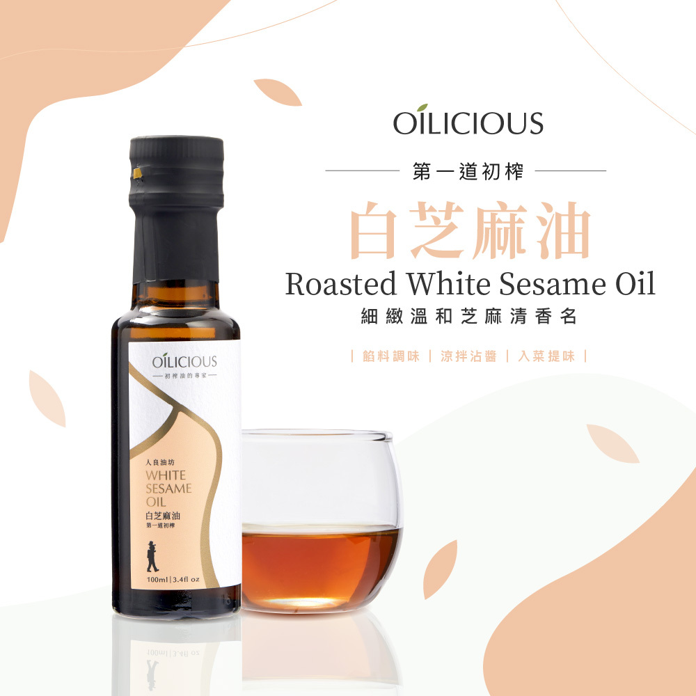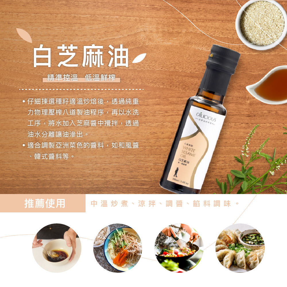 ‧透過純重力物理壓榨方式,八道製油程序,呈現細緻溫和的白芝麻香氣,是記憶中傳統料理提香的好滋味。