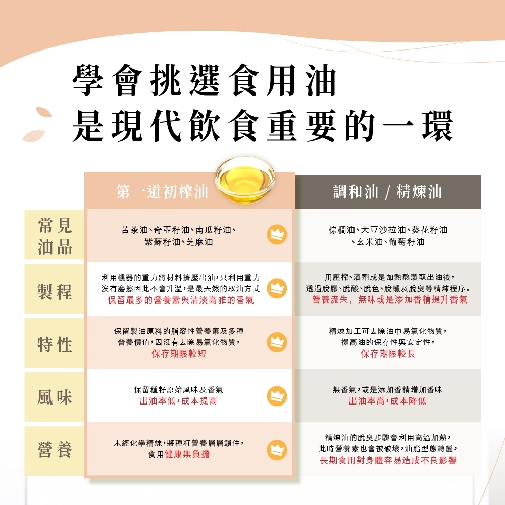*未經脫膠脫酸脫色脫臘脫臭精煉過程,保留天然植化素等多種營養