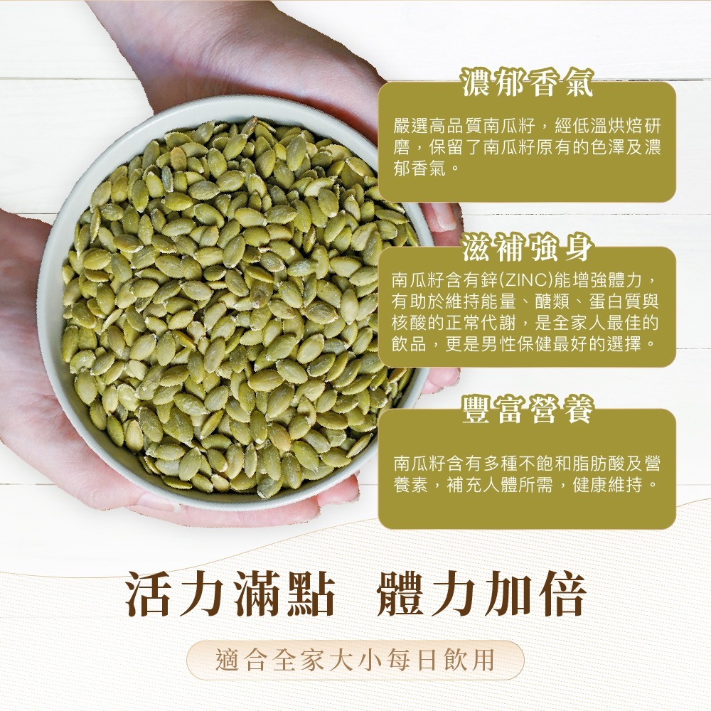 ‧嚴選粒粒飽滿特A級南瓜籽細緻研磨
